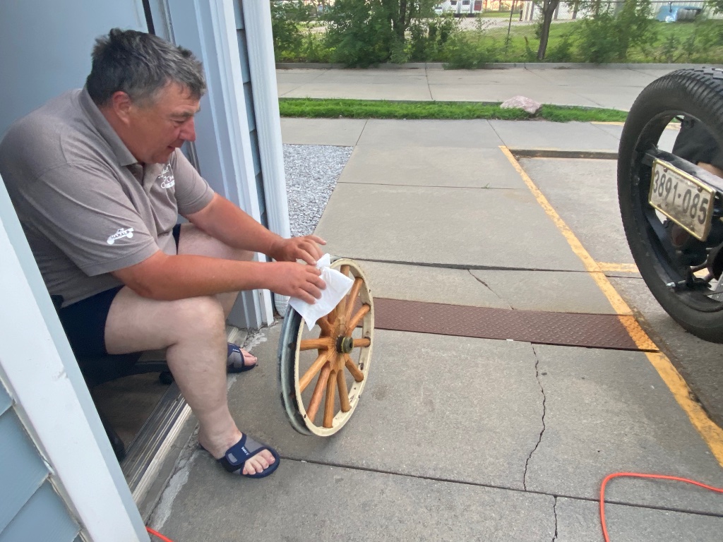 They were able to respoke one wheel. I think they slathered two others with linseed oil. I believe they had enough new spokes for three wheels, but were only able to press one together. That was a “back alley” affair because the shop owner doesn’t allow customers in the shop. We literally had to be let into the shop from the alley and nothing was said. The owner was very good about it after initially saying no.