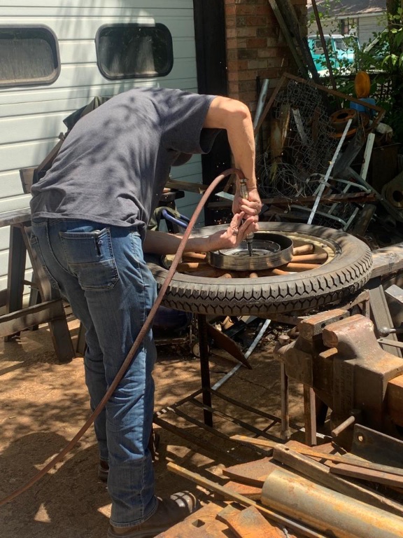 Where in the world did you find 36 hickory spokes on short notice?. Also a nicely framed beginning of the video T models slowly rising above a K hood. Well played.