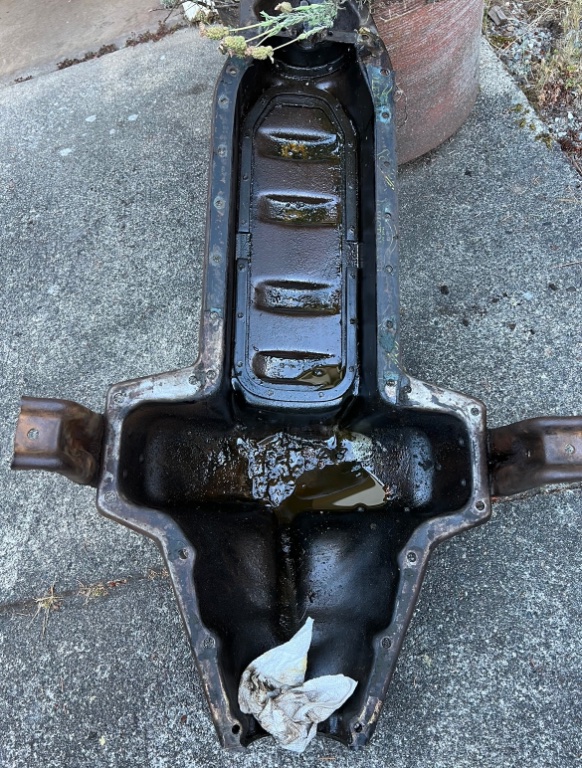 We pulled the crankcase off of our new green motor to investigate the Klunk Klunk noises we heard while hand cranking. Buried in the sludge were a handful of greasy bees.