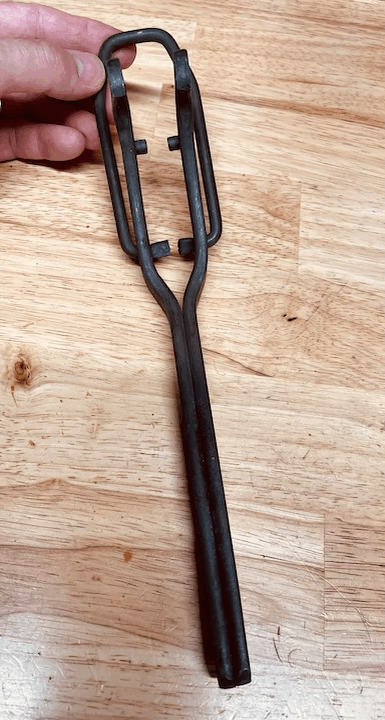 May be a fork lever for removing tire lugs. Early larger rim clincher tires used these lugs to help hold the tire on, the lug passes through the felloe.