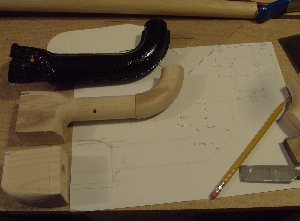 So far, I have turned maple for the inside shape. when it gets warmer, I will cut some steel to form the outside.