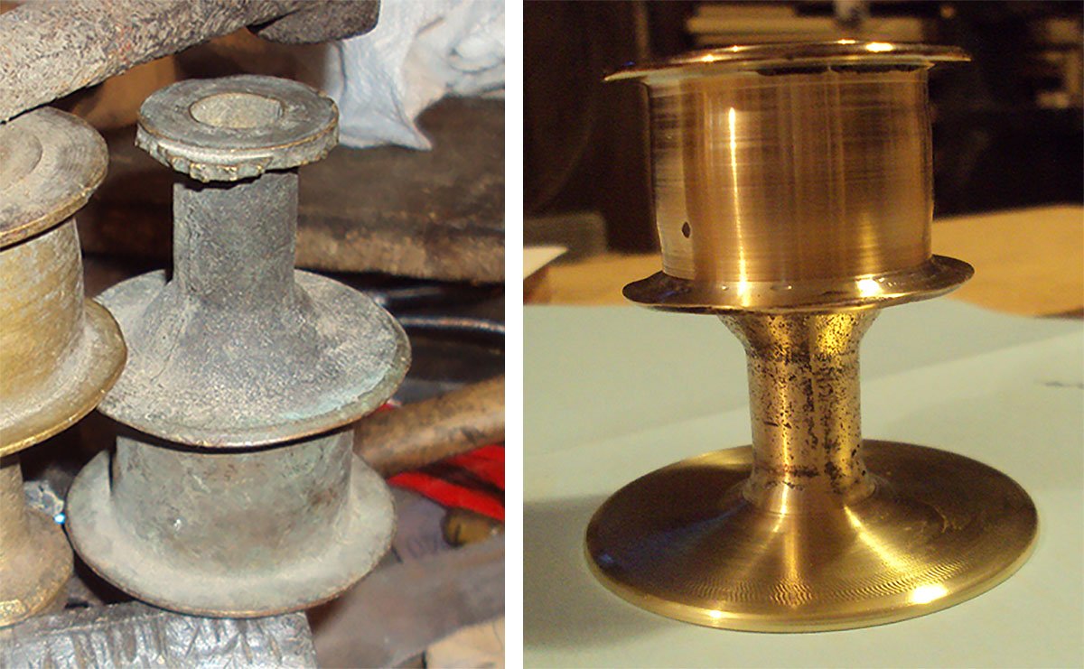 You are not alone in your metal spinning frustrations Rich. You may have seen my carburetor float project on another thread where I vent about having hired 2 professional metal spinners to spin .012”-.015” brass sheet. Both spinning efforts failed miserably with the material thickness being the excuse. That’s what led me to spending dozens of hours building a hydraulic forming fixture that luckily yielded fantastic (yet tedious) results. Your final project looks fantastic! Keep up the enjoyable work