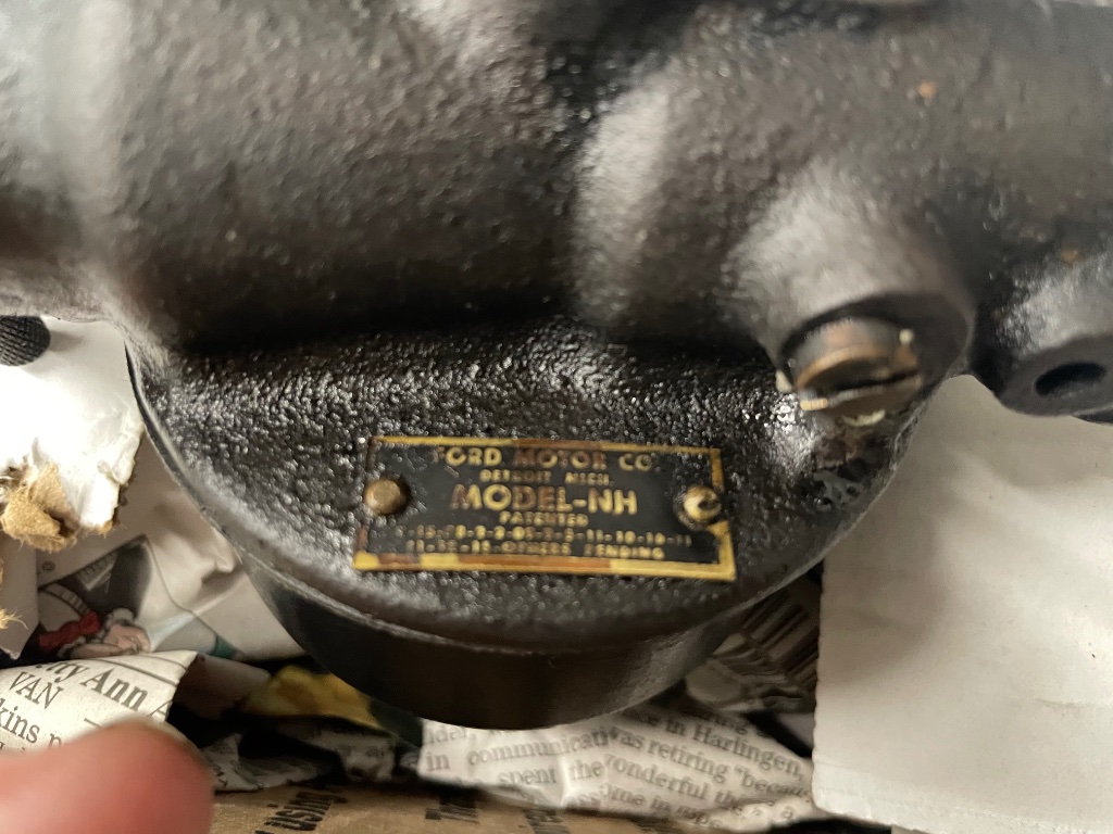 We are looking at two different carburetors. Pep C's has the Simmons tag on it. Miles B's has a "Ford NH" tag on it.