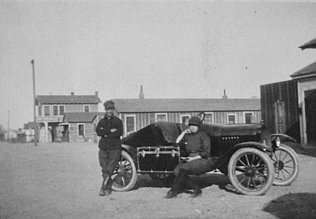 The D Wilkin and Company van is likely an English bodied car, typical of the way their vans were styled. It appears to be a RHD 1915 model. The partially blacked out headlights were a WW 1 response. The spare wheel is a Stepney wheel. It clamps to the rim of the flat tyre and allows the car to be driven without having to make a repair on the side of the road. I had one but never had occasion to use it.