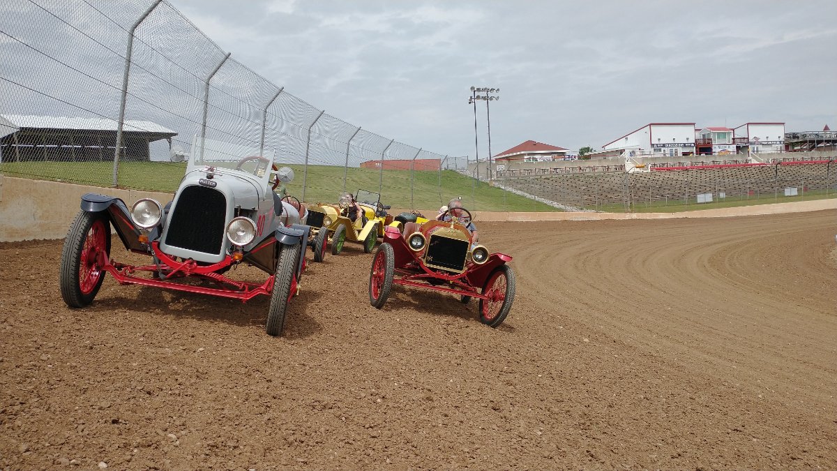 Today we had a beautiful day driving 45 miles across the state to the Beaver Dam Raceway. The day stayed sunny so we were allowed to drive on the clay track. It was like driving on crushed rock, so we bounced and shook our way around the oval. On normal race days they water the track and it gets smooth like rough asphalt. I think I still have all my teeth.