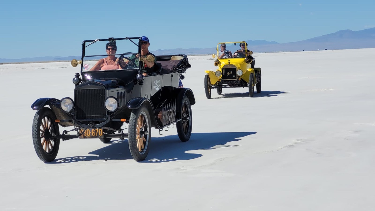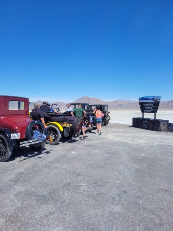 That was fantastic to drive on the salt road which never seems to never end. My wife Heidi made her first T driving experiences, no tree or fence near to us; 3 weeks later than you, Kathy, in Detroit.