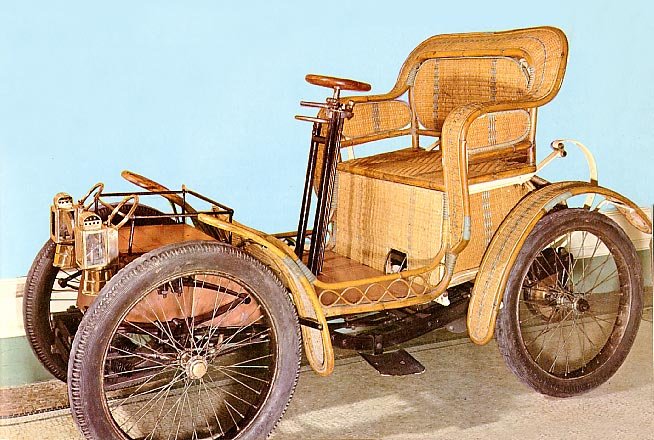 The tough, lightweight woven twine bodies shared certain advantages with the woven wickerwork tonneaus, and offered some peculiar advantages of thier own. They were indeed comfortable, and perfectly quiet. Even slamming a door generated only a muted whisper. They never dented or rusted. The bodies were fully washable and line-dryable, and could be starched if the owner wished. A starched body could be ironed and steamed to provide unique and artistic curves, planes, and creases to give a car a distinctly formal appearance, or simply washed and dried, which gave a somewhat more casual and sporty look. The bodies gained a bad reputation among cigar afficiandos and their insurors after errant cigar ashes caused some spectacular rolling conflagrations. The boll weevil disaster in the southern cotton districts put an end to the woven twine era and opened the door for Big Sheet Metal's near-total takeover of the auto body market.