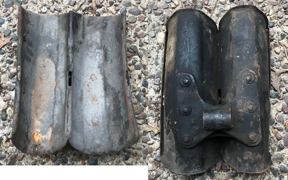 The first picture shows a set of spare tire cradles. I had a nearly identical set on the back of my 1926 Hudson Coupé. Your set will mount two spares, very fashionable in the early to mid '20s.