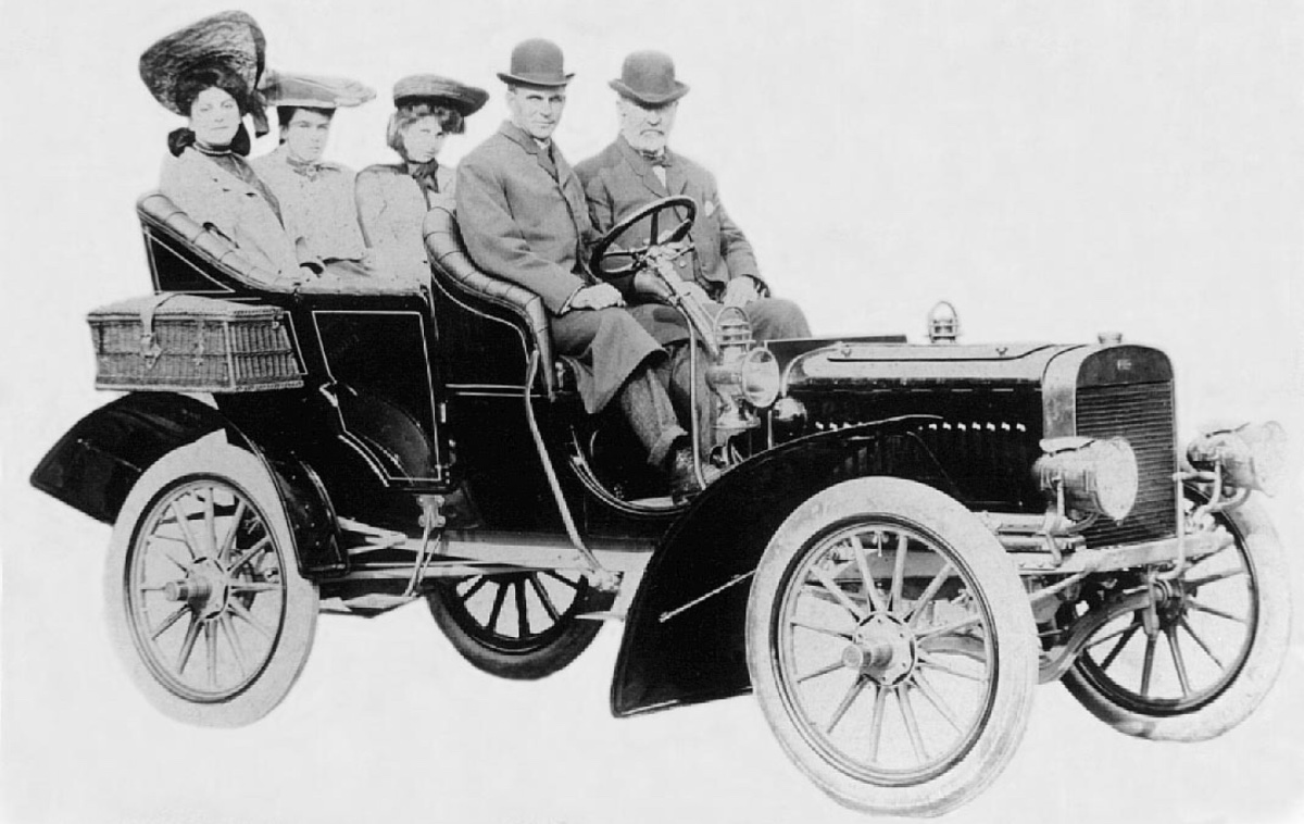 Below, an early B (step plates, angular rear door, straight front frame crossmember). Henry Ford at the wheel with FMC President John Gray beside him. I presume Gray's family members in back (or a big night out in Detroit......