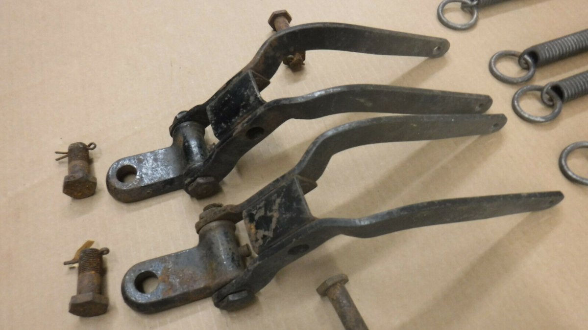 Can anyone identify these? I'm mostly just curious. These accessory shock absorbers were on my car when I bought it. I've not seen them before but that doesn't mean they aren't common. Can anyone identify them? The spring perches are moved to opposite sides of the axle and installed facing outward toward the wheel. Then the lever arms are connected to both the perch and the leaf spring. The small coil springs are attached to the other end of the arm and some rings are added to the spring perch for the other end of the springs.