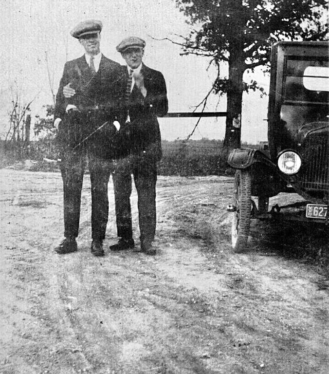 In the first picture of four guys with an elderly touring, the one in front looks like Bing. But in the second picture he doesn't. I'd like to know the story on that one. The two photos are not as early as the car.