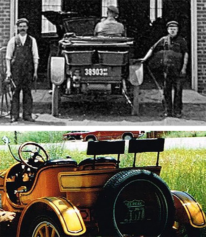 I wonder what car the "Dual Mother-in-Law" seats are on at Jos. Buttonow's garage. A similar one, a Pierce Arrow, inspired me to make some for my Speedster. Imagine carrying two Mother-in-Laws! There might be a duel.