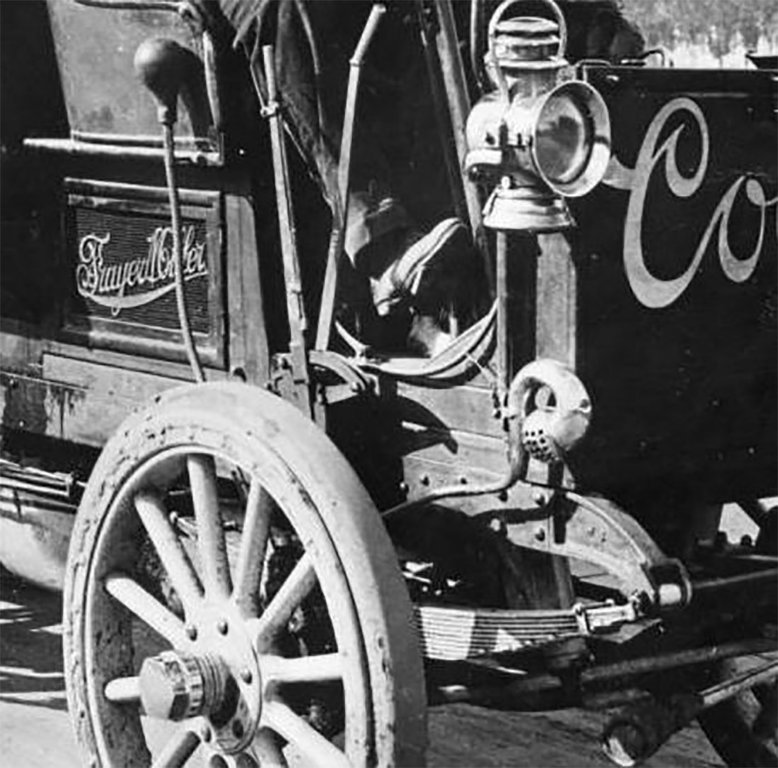 OK, I broke the code. It's a Frayer-Miller. They were built ..."from 1907 to 1909. In 1910 F-M was bought out by Kelly Motor Company (who would later become Kelly-Springfield)". This Coors truck is similar to Herb's including the horn. Perhaps a standard Item. It is also taken supposedly in 1910.