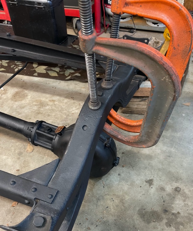 And be sure the crossmember channel isn't spread out over years, (esp. the front crossmember) as the spring stack should be snug in the channel, without any wiggle, needs to be secure there. Most times a mallet strike to seat the spring up there, or clamps are useful too for pulling the spring snug in place.