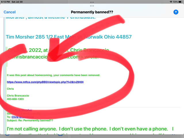 Yes, I understood this to be the case also. From my perspective after first talking with the 'powers' that made this decision, it is my opinion the current Board appeared to handle this very diplomatically and fairly, and reached out to Tim several times to understand his position. I applaud them in the "gentlemanly approach" they used to ultimately come to this decision. Also, these issues appear to have gone way outside of just this forum, and many chances for reconciliation were given as options for the offenses. As I understand it, unfortunately Tim was unwilling to work towards an amicable resolution with this club's leadership, and based on what I heard from MTFCA BoD members, I feel their requests were quite reasonable. Again, it is sad for Tim, and also the volunteer leadership of this club that had to agonize over this that both sides could not come to a win-win solution.Mark Nunn wrote: ↑Thu Aug 11, 2022 8:28 amForum admins have been deleting Tim's personal attacks on forum members for at least two years that I am aware of. That may be why you have not read them. I read the forum with my morning coffee on most days so I usually read comments before they or the entire thread is removed. I have seen them disappear from this forum.