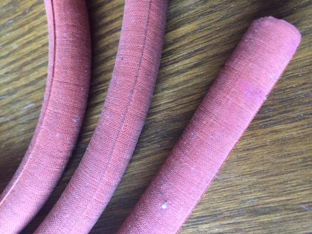 This is the hose Larry is referring to. It is red with the "cloth" pattern on the outside, 7/16" OD and 1/4" ID.