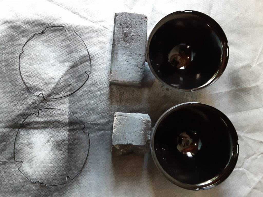 Head lamps and radiator apron restoration. Back side of apron primed.
