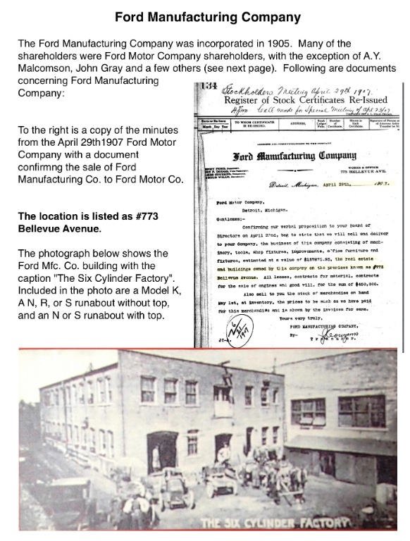 Malcomson is about to "tear into" the creation of Ford Manufacturing Co. Ford Manufacturing Co. was created by a group of Ford people for the intention of manufacturing/building portions of the upcoming Model N. Many (most) Ford historians report (believe) this company was created as a way to "siphon" profits away from Malcomson and other investors. That's an argument for another day, however, this page gives us insights, and creates a question I think must be explored.