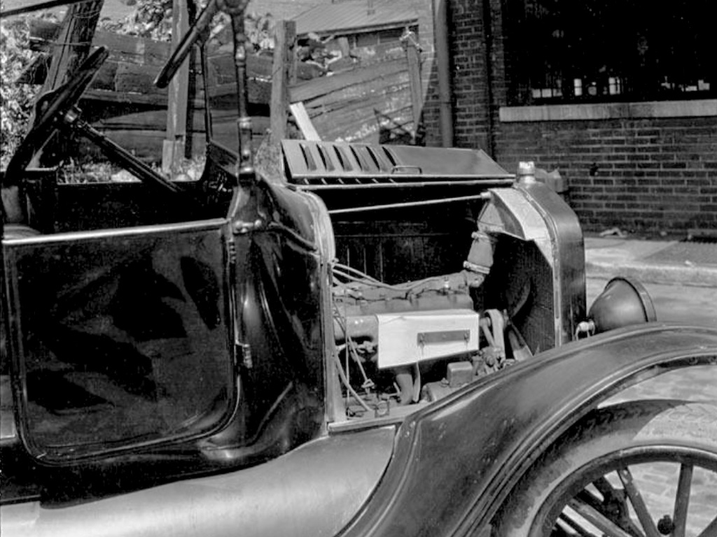 Regardless of the photo being flipped or not, the near side is the side nearest us, the viewers. Whether the near side is the right or left of the car depends upon whether the photo is flipped or not. The choke wire loop would always be on the right hand side of a standard model T, and therefore would tell us if the photo is flipped or not, IF it could be seen. I have zoomed in and studied the front of the radiator for numerous minutes, and cannot see anything I can believe to be the choke wire, let alone a loop for one.