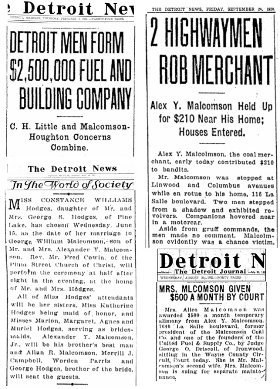 Below, Malcomson part of a large fuel and real estate company and held up by two robbers at gunpoint. Meanwhile, his children had large society weddings, and in 1922 his wife filed for alimony: