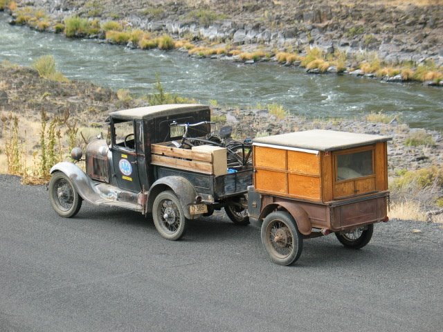 We have been on a number of trips recently and put on well over 1,000 miles most of them dirt roads. We went to the desert and forests of the Deschutes National Forest in Central Oregon, the desert and mountains of the Owhee country in far Eastern Oregon and Western Idaho and then drove the Quartzville Back Country Scenic Byway with the Model A club in the Cascade Mountains of Western Oregon. We had great trips with wonderful weather and met a bunch of really nice people everywhere we went. We had very few problems altho I did have to push a pick up with a rope back to camp on our last day at Quartzville when I blew a head gasket (the steam picture).