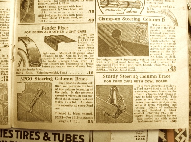 Later, in looking through the catalogues I came across a rubber piece that goes on the edge of the bracket to keep it from rubbing directly on the steering column. This seems like a useful thing that would improve the bracket to column fit and prevent wear and possible squeaks. But, I don’t see this little thing in any of the pictures I have seen of the later steering column brackets installed. Was this used by the factory or not? I am installing the bracket on my 22 pickup so period correctness is not really an issue, but I am wondering