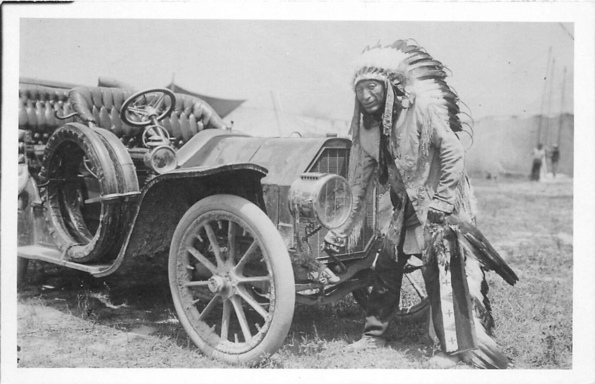 Chief Iron Tail was a regular in the Buffalo Bill wild west show. He is cranking a 1915 Locomobile. Often called Geronimo's Cadillac. He was the most photographed indian chief in the 19th & 20th century. It is his profile that was used for the indian head nickle from 1913 to 1938. He was an Oglala Lakota Chief.