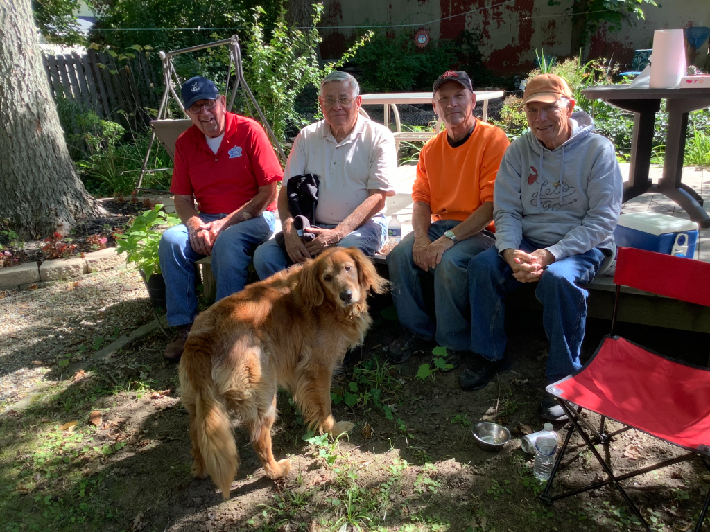 A bunch of old guys with old cars………No jobs, no money, no prospects, and nothing better to do. They stopped by ,got me out of the shop for a couple hours, and thrilled with the day. Probably nothing better than enjoying the backroads around these parts, just following the tailight in front of you. Thanks for the nice day, and hope you’ll have me another time. Thanks, left to right……. Tom, Art, Tim, Jim and especially Champ, the leader of the group. I followed in a modern car to pick up parts to resell that fell off. I came home empty handed!