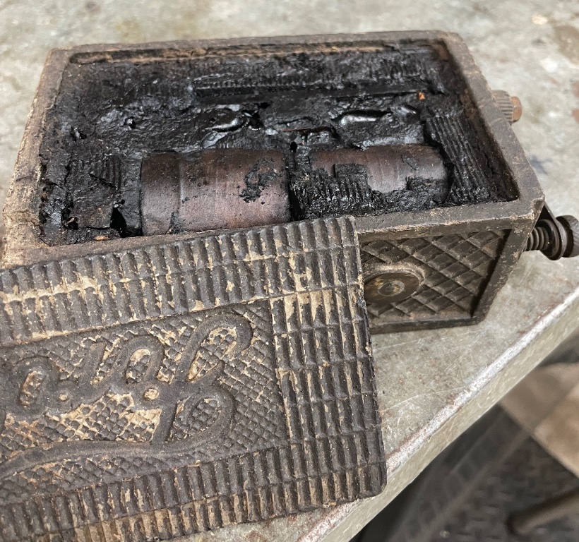 Just how these cases were molded is anybodies guess, my guess is that they were injected molded (because the details are way too fine to be just a pour or even a heated pour for that matter) into a 3 part (probably water cooled) mold and that the spew way is in the upper left back corner, the "breathers" were 3 vent holes along the side opposite of the contacts, which when surfaced (cut) would also provide pressure points for the contacts against the coils box. But that's just my thinking on them, how they were actually done I don't really know, but one thing I do know is why you almost never find one of these coils "unmolested" (sanded)....over time the case tends to expand and so as not fit into the coil box, the reason for this expansion is the asbestos fibers absorb moisture, and the constant heating and cooling of the coil case, over time makes them expand out of shape to fit the coil box.