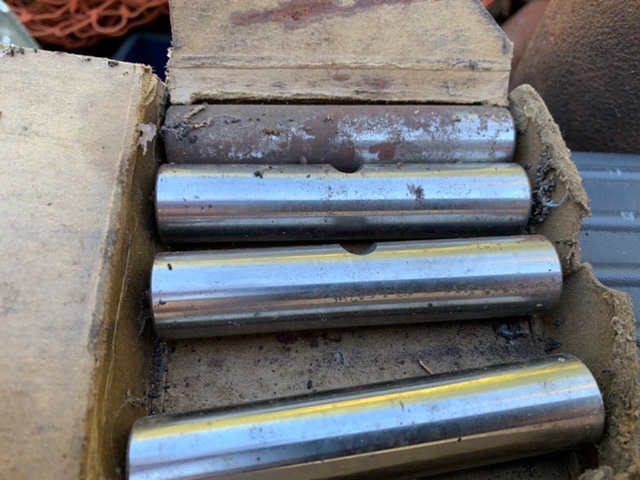 Here is a set of piston pins. Old stock. Box says.005 so they must be oversized. One has some light surface rust, should clean up.