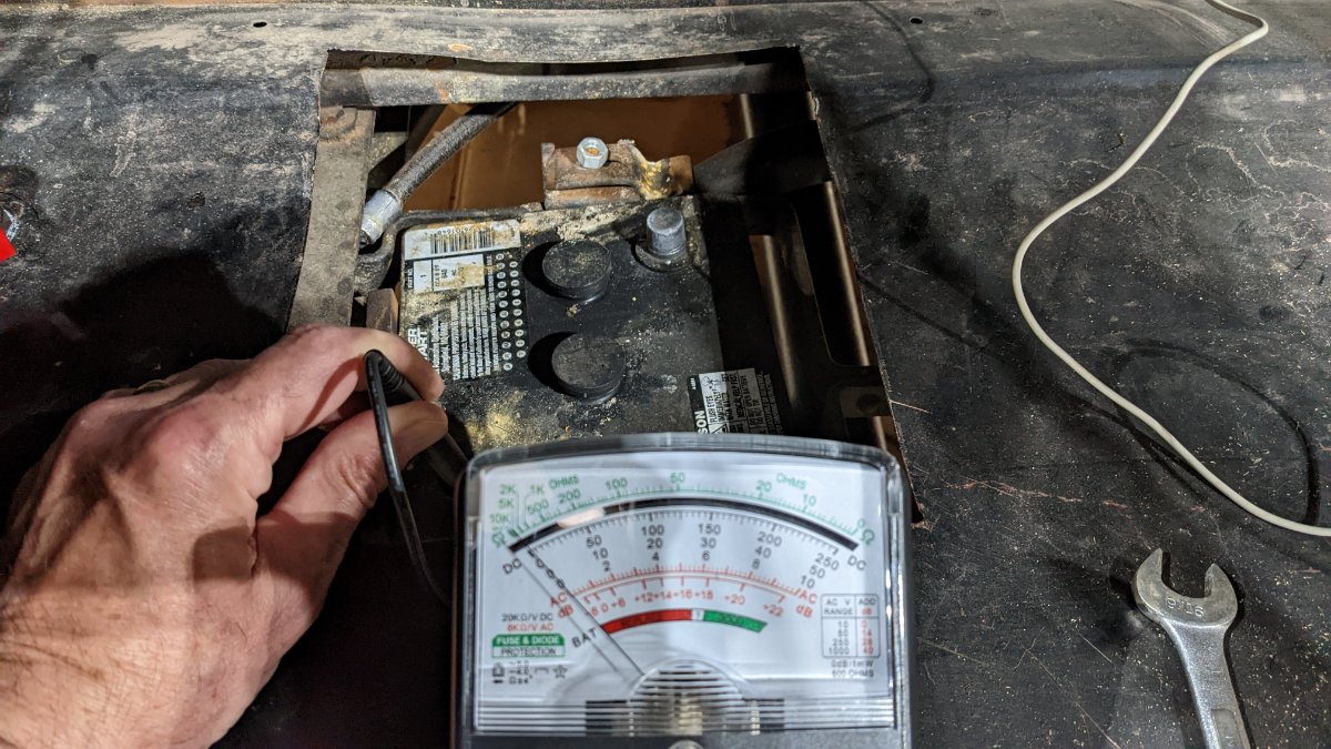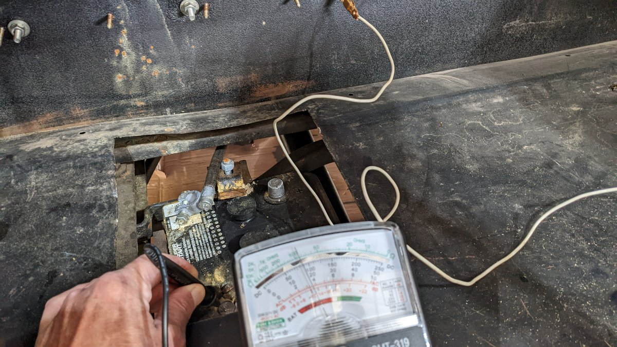 Pat, there was no voltage between a good ground and negative post with everything disconnected. I turned off the power to the barn to eliminate outside sources.TXGOAT2 wrote: ↑Fri Oct 07, 2022 12:48 pm. *** If you test directly from the battery negative post to a bright, clean spot on the frame, with the positive battery post disconnected, do you get a reading? You should not. Doing that test should eliminate everything but the battery itself, unless you are measuring a voltage induced from house wiring, which is very unlikely.