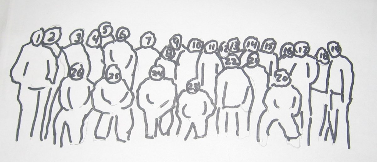 When I got home this afternoon and again had internet access I grabbed the group photo and added numbers. They're not all the same as Kathy's numbers, so I'll edit the list to fit this version. I "know" a couple of the missing names, but they're buried somewhere in the back of my alleged mind.