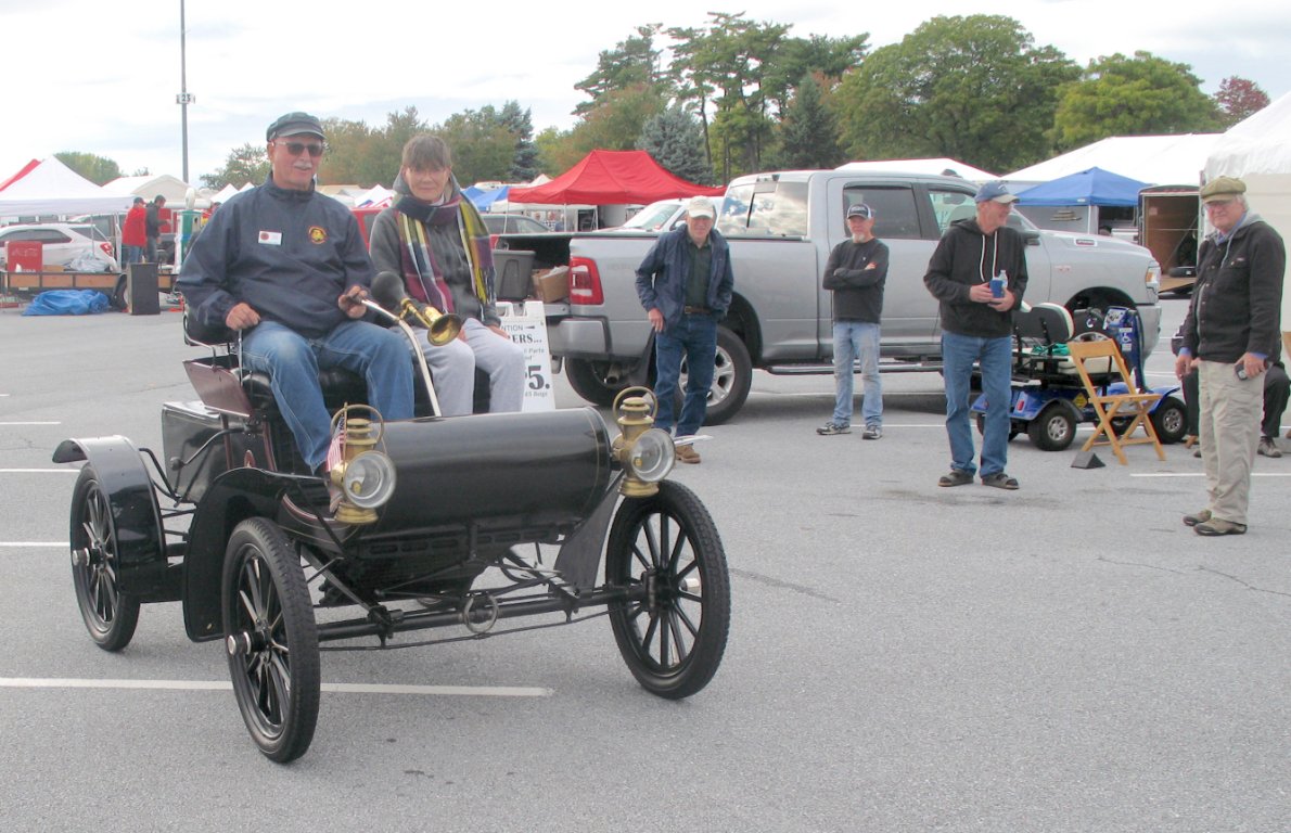 Model T Times editor Natalie Weaver visits with MTFCA prez George Akin.