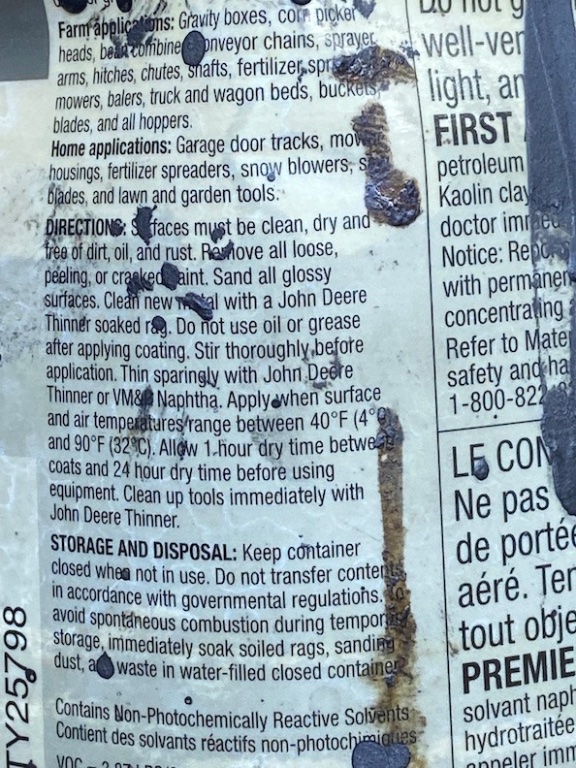 BLB Bruce, I disassembled the spring, cleaned the leaves in Varsol (it was kind of oily back there), feathered out any ridges created the the next leaf up, then painted the leaves both sides with John Deere Graphite Lubricant. This 1 quart can contained enough for maybe a dozen springs.