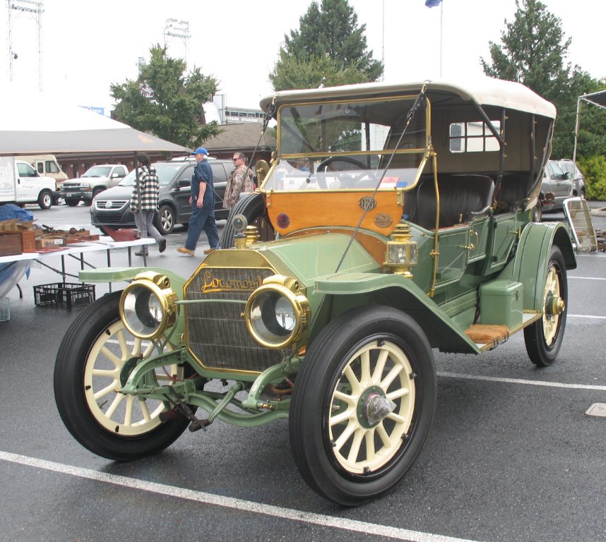 That distinctive dropped-center front axle says Locomobile. This one is 1910.