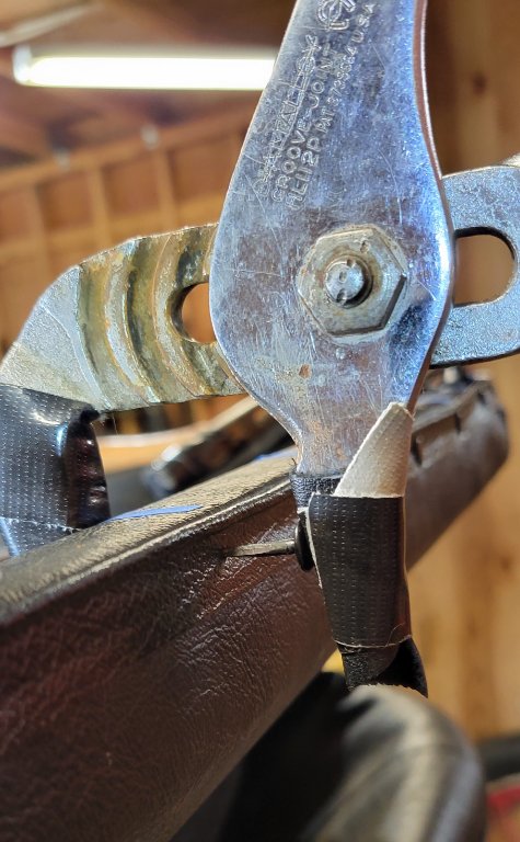 I had to re-trim the front bow on my 1911. When pounding in the upholstery nails with a leather covered hammer, the bow would bounce around. I decided that pushing in the nails with a pair of (leather protected) channel lock pliers, instead of pounding them in with a hammer, was much easier. I don't know why I haven't thought of this before...