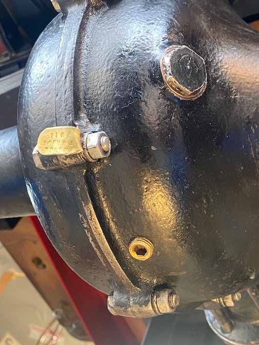 Not breaking any new ground here, but since the speedster diff was illuminated and clean, the photos show a couple of modifications that make maintenance, and the eventual sale of the car, a bit easier: brass pipe thread drain plug, and brass "bronze thrust' ID tag.