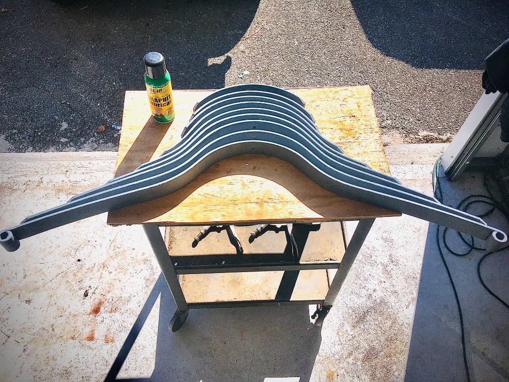 Tweeked, Blasted,primed,painted the frame. Refurbished the front spring and axle beam. Working on the rear spring. Applied slip plate to both spring packs and waiting for some new repo OEM shackle kits and oiler cups to show up. Most of all having fun with it!