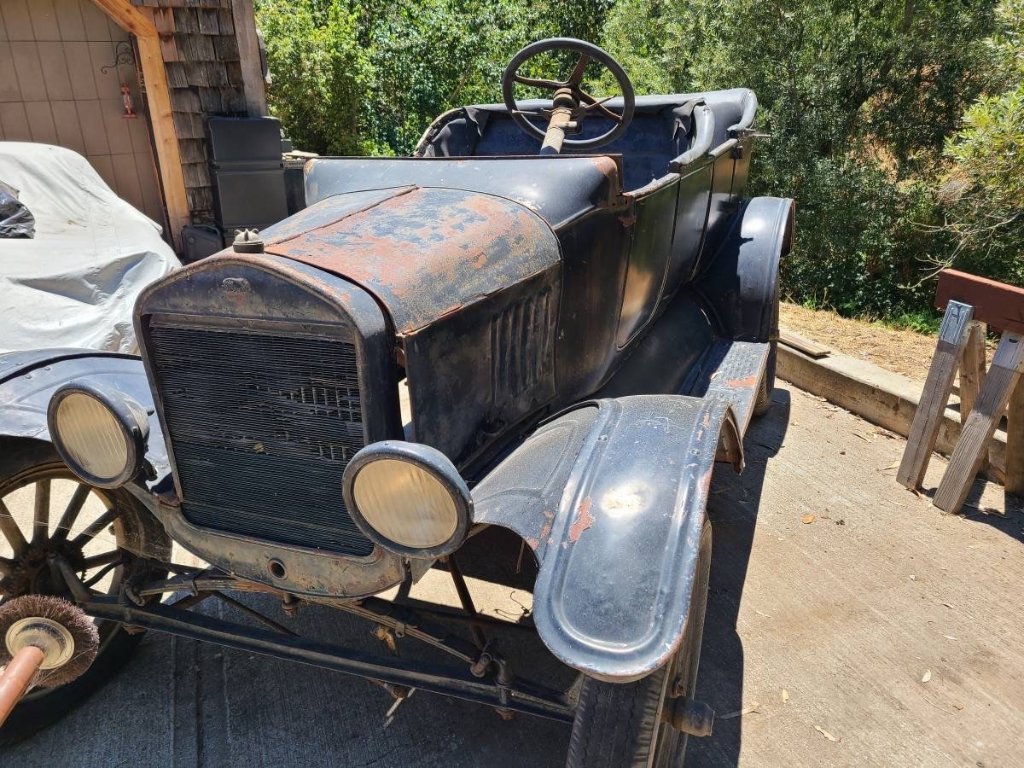 Another reason I believe its a ‘24 are both rear fenders. Altho’ they could’ve used up earlier parts on a ‘25, I’ve learned 1 year only 1925 rear fenders had a small ‘curve’ where they attached to the outboard of the running boards.