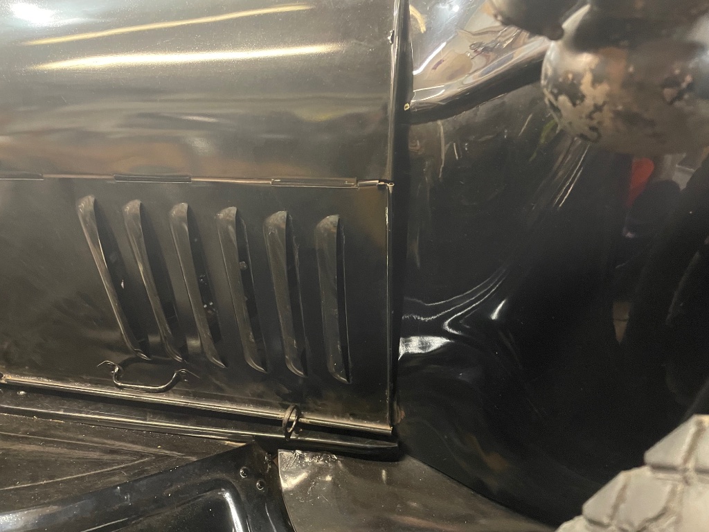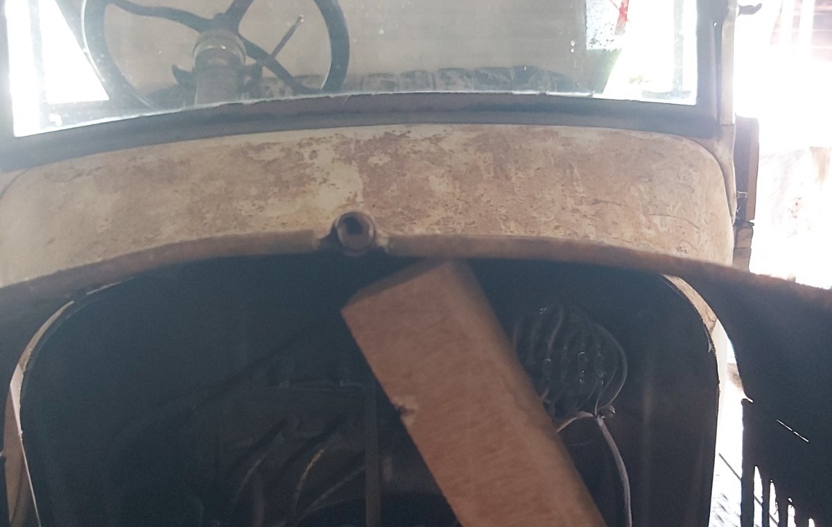 Looks like a metal firewall in the picture. Do the hood sides come down to meet the hood clasps, or is the hood short? Late 1922 's had a higher cowl and radiator, and a metal firewall instead of wood.