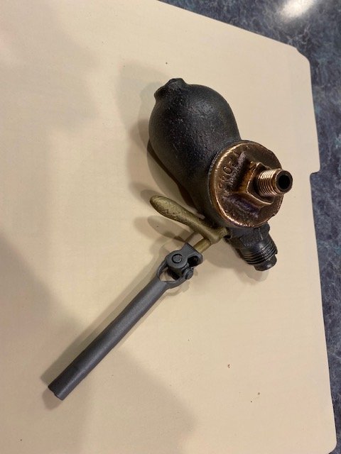 I have read a number of solutions to the problem of extending the fuel shutoff handle from under the car to the outside. For sure the passing of time makes the trip to the ground and to the center of the car further with each birthday and I now find it a quite a chore to make the journey. As a result I often leave the fuel valve on, risking a leak and a fire, even though I know better. I have made a few "universal joint" attempts to alleviate the problem but never was satisfied with the "fit and finish" or the operation of any of my creations. Last night, brainstorming the issue, I came to the realization that a '26, '27 carb adjustment universal might be the answer. I had an old one and proceeded to saw off the needle valve end flush with the threads and cut off the ears that provide tension to hold the adjustment. I then chucked up the valve from the "potato" and drilled a #3 hole into the handle end about 3/4" deep followed with a 1/4-28 tap. A drop of locktite secured the new universal joint to the valve and tonight I will extend the yet to be made handle to the exterior of the car body. So far my investment is zero and the time spent was about fifteen minutes. Simple but practical and still 100% Model T.