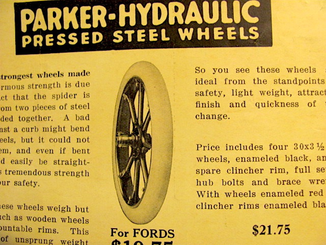 Just a funny joke, those wheels are Parker brand, and at Hershey this month a single ‘Parker - like’ steel wheel without rim or the special lugs was offered.