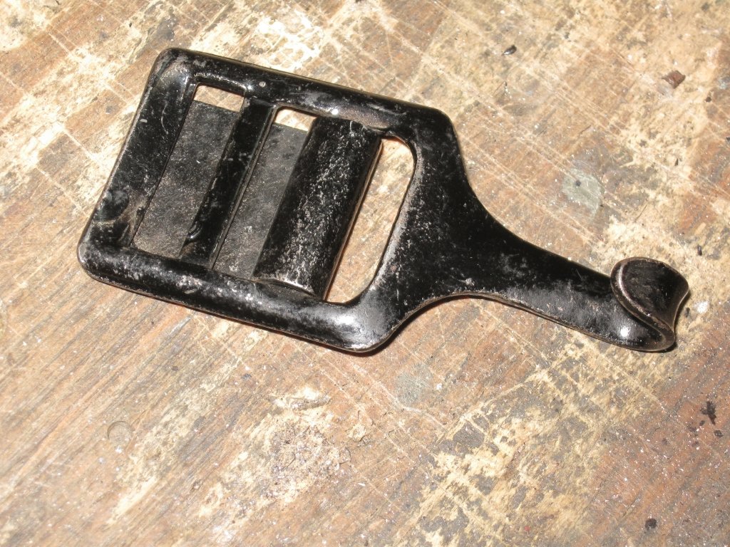 I was fortunate enough to get a couple of n.o.s. buckles/hooks for the front straps from Bob Bergstadt, as the originals had been lost long before I got the car.