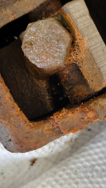 While twiddling my thumbs waiting for an order from Langs, I started to clean this pump up and confirmed that there is no set screw holding the bolt. It was an oxidation and sediment formation. The bearings seems sound, with no play in them. This may be a rainy day rebuild project.