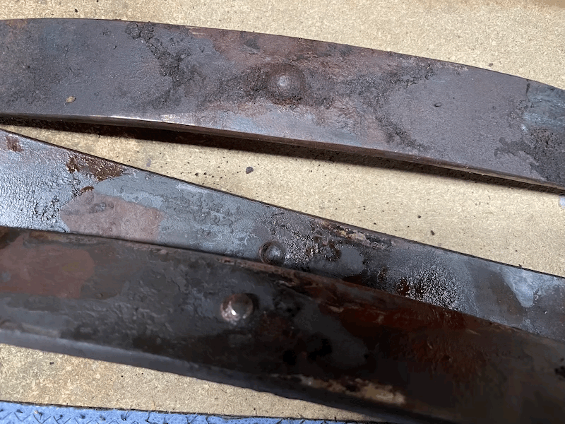 Has anyone ever seen a front spring like this? No bolt, just a dimple that one leaf sits into the dimple bottom of the next leaf. I've since changed it out for a new one.