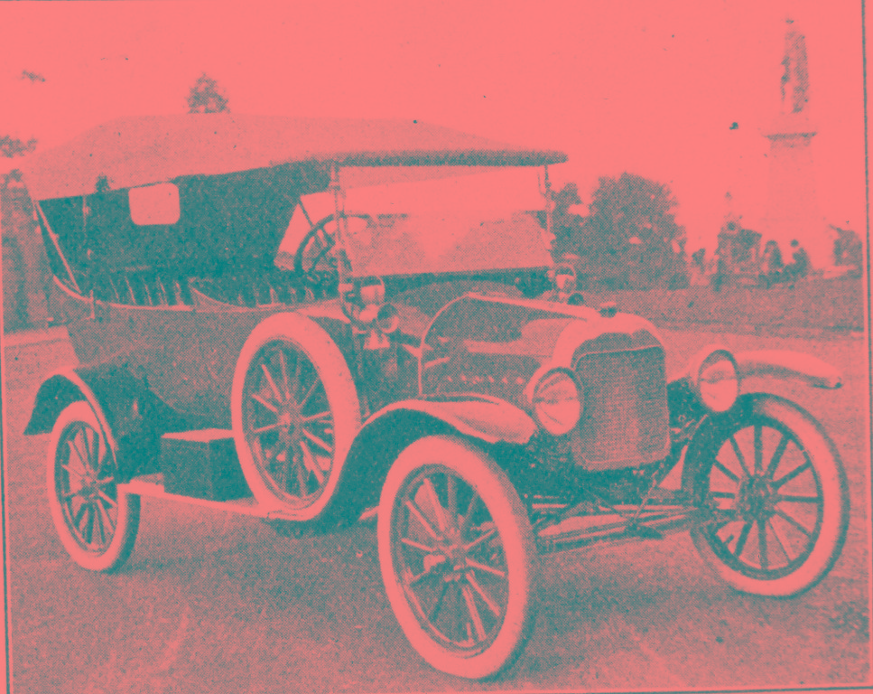 Now that I have had a close look, the car has a standard Ford factory body, rather than a Tarrant body. The hood has a glossier finish than the paintwork on the body, suggesting it is a different paint finish. No doubt it was likely fitted when the radiator was upgraded. The rest look like a standard 1915 model, complete with brass trim on the sidelights. I will go out on a limb here and suggest that it is an Australian car, based on the type of trees in the background.