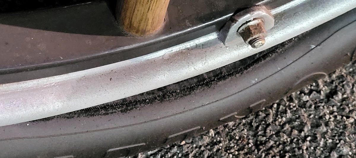 Here is a photo of the amount of loose rust and paint which I cleaned out of the wheel when I took off the tire, all four wheels had about the same amount inside them. It was good hand full in each wheel. Only positive I have about the crap tires we have been stuck with for years one gets to remove the tire and see what's going on with the rim. "I hope the tire sellers don't use that as a reason why they made them so bad"