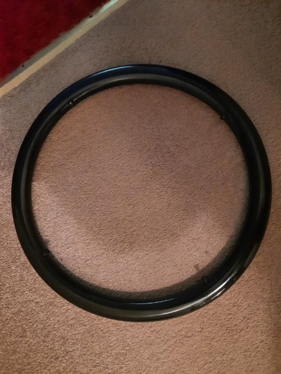 FOR SALE: excellent condition black steering wheel with screws for spider. ABS plastic 16" O.D. $50 plus postage