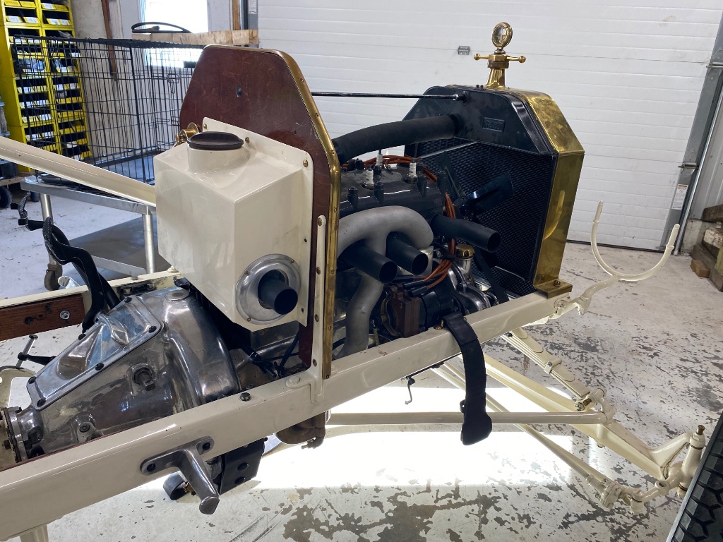 Below, one feature the Benson Library (THF) drawings show for this racer/motor (labeled “M-III”) was this bit of cosmetic “fluff,” a flange for the “dashtank” opening allowing the #4 cylinder exhaust to protrude behind the firewall. That’s one way to hide a 300 c.i. motor in a T chassis: