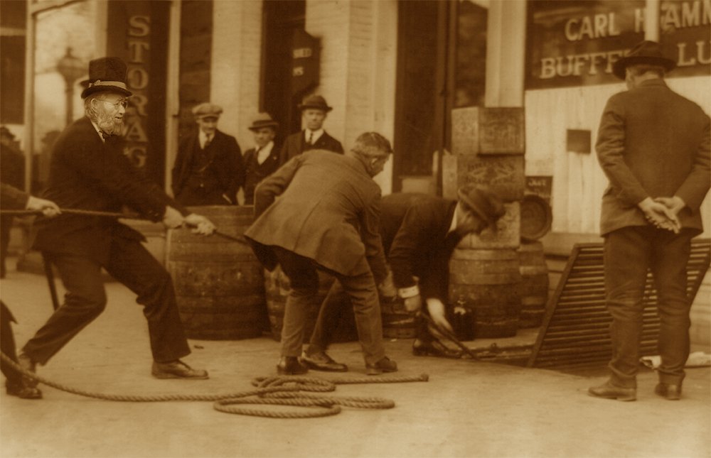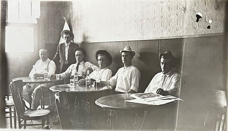 Top photo, Morris "Monk" Squatterfeldt, Silverplume tailor and haberdasher who was a literal believer in "old sayings". In this case, he was testing "more fun than a barrel of monkeys". Unable to extricate himself from the barrel, friends and family laughed uproariously at his predicament, taking photos, tweaking his nose and giving him "noogies" until his wife, Lucinda, kicked the barrel over, allowing him to crawl out. Monk's conclusion: "fun for some, not for all".